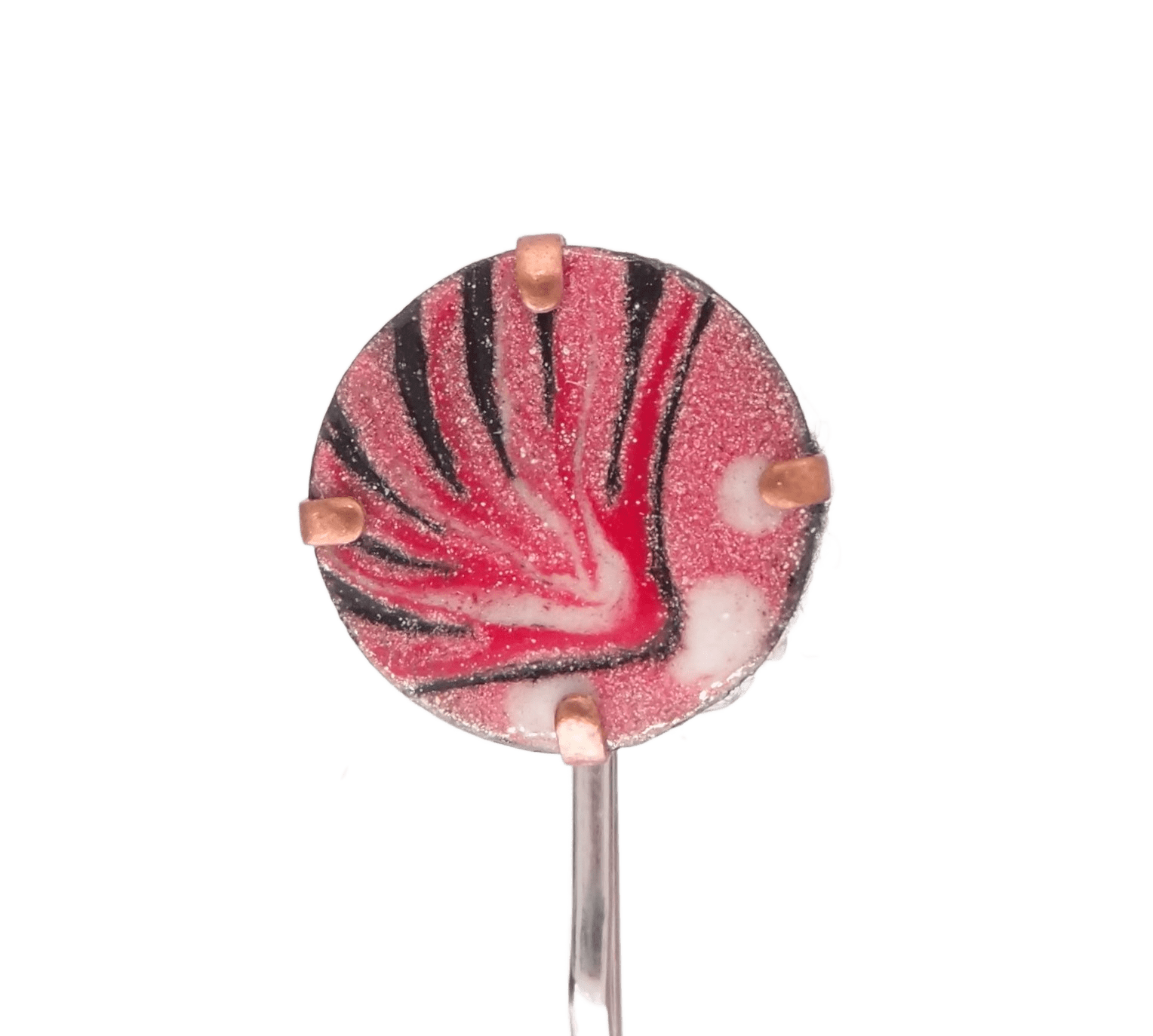 Smaltovaná růžová sponka. Tato smaltovaná růžová sponka je ideální pro slečny všech věkových kategorií, které hledají stylový a praktický doplněk. Sponka je vybavena pevným perkem, které zajistí, že z vlasů neklouže, a drží na místě po celý den. Její jemná růžová barva dodá vašemu účesu nádech elegance a šarmu. Perfektní doplněk k naší kolekci šperků – skvěle ladí se smaltovanou vážkou nebo náušnicemi
